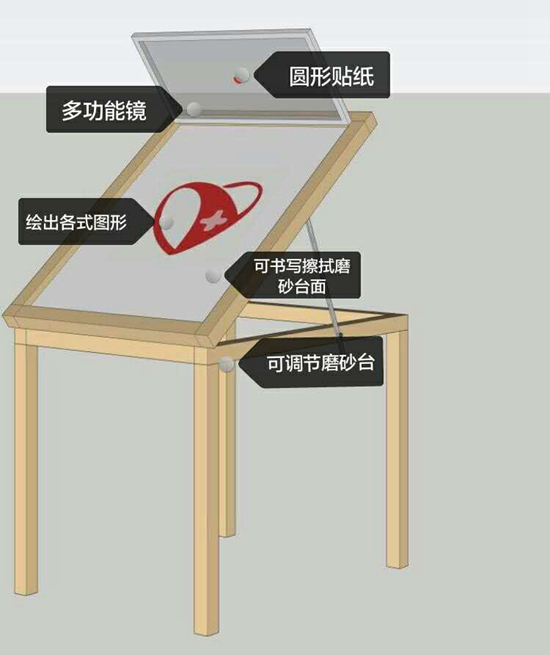 作品介绍:在传统磨砂板基础上设计的一种新颖的多功能器材,有趣味性,既可以锻炼患者上肢的运动控制、关节活动度、协调能力,还涉及到认知功能等方面,让患者能够更主动地进行上肢功能锻炼。
