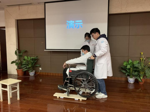 比赛中,参赛选手们根据临床上的康复问题,提出各种优秀的创新创意作品,包括帮助轮椅使用患者进行训练的轮椅“机器人”、帮助气管切开患者进行渐进性脱管的训练装置、帮助偏瘫患者进行辅助Bobath握手的“幸福手套”等等。