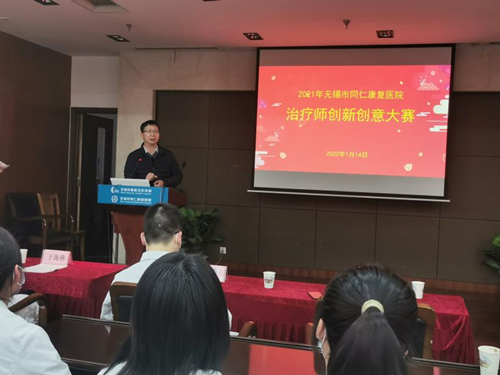 康复部主任助理孙杨帆致开幕词,对大赛的前期准备工作予以充分的肯定,强调了创新创意对康复治疗行业发展的重要性,只有不断开拓创新,才能带领行业发展进步。