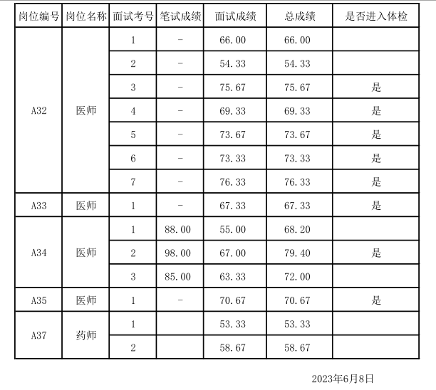 2023年无锡市卫生健康委直属事业单位公开招聘其他类专技人才考核成绩公示