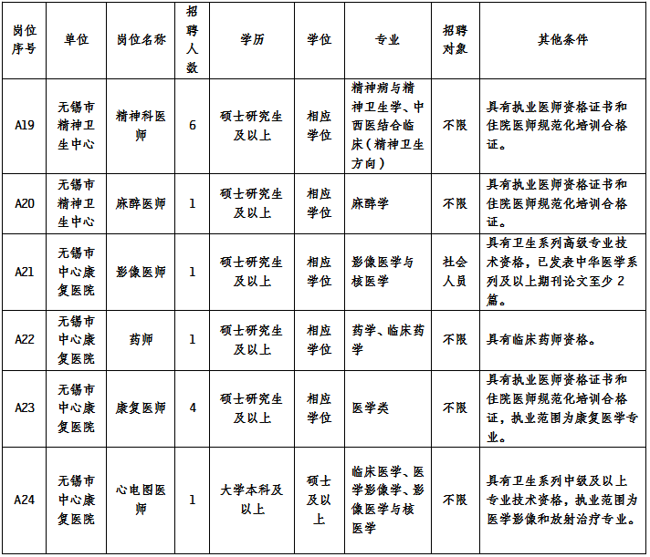 2023年下半年无锡市卫生健康委直属事业单位 公开招聘其他类专技人才岗位简介表