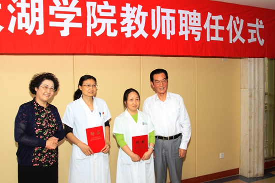 9月29日,无锡太湖学院教师聘任仪式在我院举行,我院15名医护骨干受聘为无锡太湖学院副教授、讲师,无锡太湖学院副校长王心如、顾问史金兰及我院领导、职能部门负责人参加了聘任仪式。