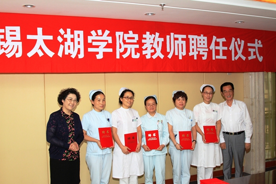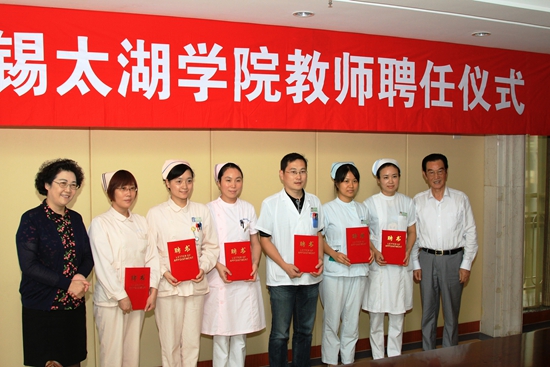 我院是中国高等学校医学心理学教学基地、中科院心理研究所临床心理学研究基地、南京医科大学附属医院、皖南医学院临床学院以及中南大学等多所高校的硕士博士研究生培养基地。多年来,承担江南大学、南京医科大学、苏州大学、南通医学院、无锡卫生学校等医学院校的本科、大专生的《精神病学》、《医学心理学》和《护理学》的理论教学工作。此次,15名医护骨干受聘为无锡太湖学院副教授、讲师后,将承担《精神科护理学》、《康复科护理学》两门课程的教学工作。“院校合作、医教协作是现代人才培养的重要、有效的方法,我们本着‘教学相长、合作共赢’的理念,在合作过程中将不断提升自身业务水平,毫无保留的传授给学生,为提升医疗护理人才的培养质量,提供一个更好的平台”医院护理部负责人表示。