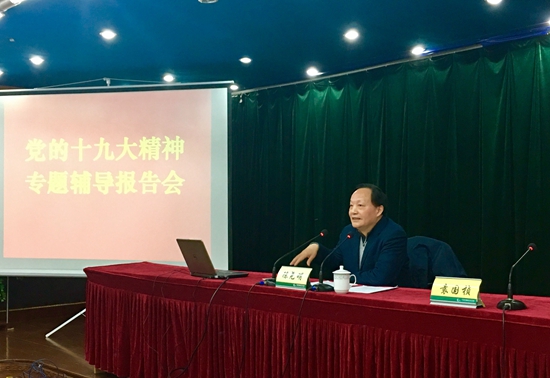 110日下午,我院举办党的十九大精神第二场专题辅导报告会,邀请前无锡市委宣传部副部长陈尧明同志作《新时代党的政治宣言和行动纲领》辅导报告,对党的十九大精神作进一步全面深入的解读。会议由院党委书记袁国桢主持,全体150余名党员代表参加。