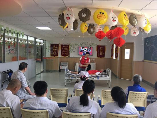 该项目自2017年3月启动以来,医院成立多个专家志愿者服务队分别开展活动,对无锡市范围内的10家社区、养老院、护理院的100余位失能老人进行心理辅导和康复指导,通过专业的心理评定和失能等级的评定为每位老人制定了一套个性化的心理和躯体康复计划,帮助他们有效的解决心理问题和改善躯体功能,同时对社区、养护机构的服务人员进行集中的培训和指导。八个多月以来,医务人员累计走进各养老机构、护理院上门调查20次,组织集中康复指导4次,举办心理、康复宣教讲座40场,提供心理咨询与辅导190余次,进行上门现场指导900余次,真真实实地将心理及康复干预技术延伸到社区家庭,使社区及养护机构服务人员学会正确的护理方法,更有效地为失能老人服务。