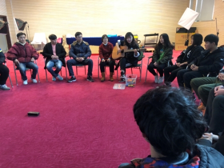 12月20日下午两点,fc2色情 团委副书记计樱莹带领医院音乐治疗志愿者服务队来到无锡汽车维修工程高等职业技术学校,为临考的汽车维修工程系30位同学带来一场“音乐律动减压”体验。