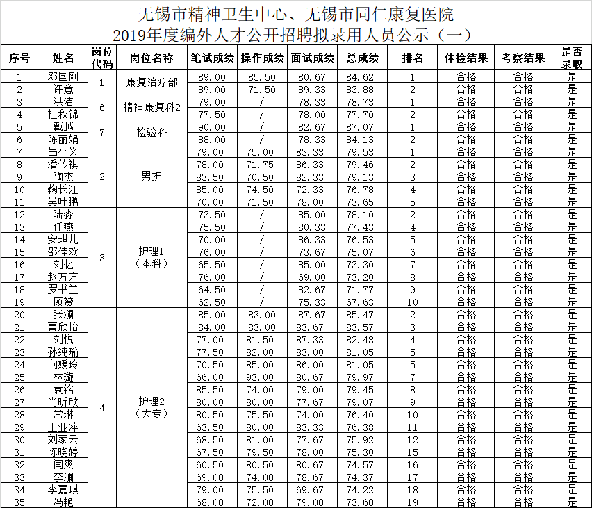 2019年度编外人才公开招聘拟录用人员公示(一)