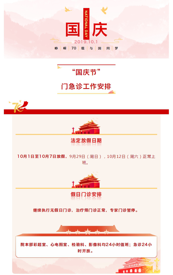 “国庆节”放假门急诊工作安排公告