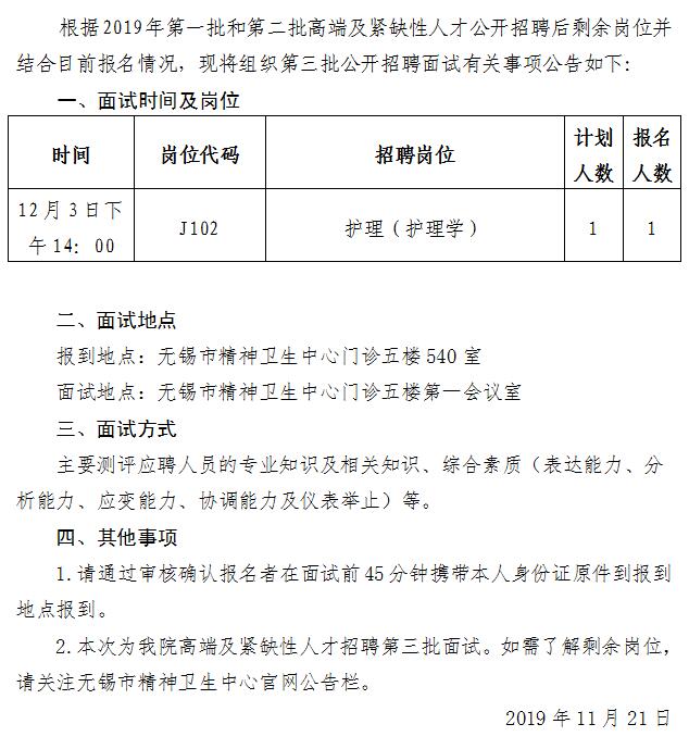 2019年高端及紧缺性人才第三批面试公告