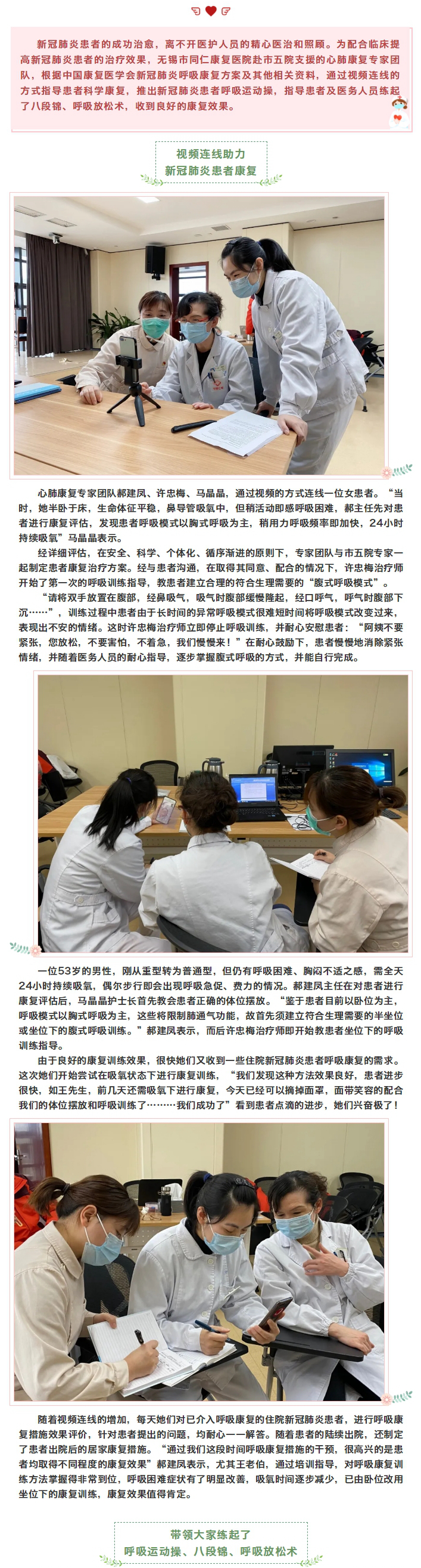 视频连线、呼吸运动操、八段锦、呼吸放松术……她们赴五院花样援助不间断