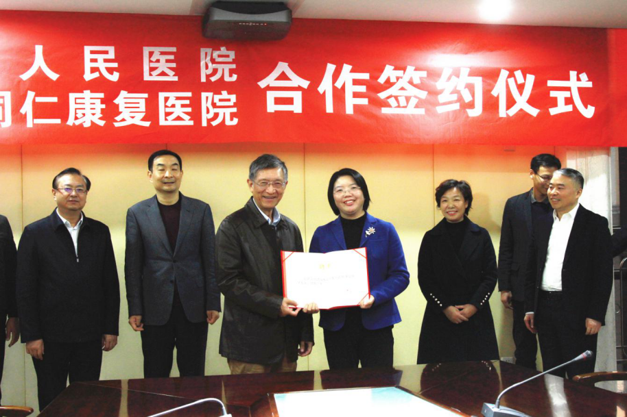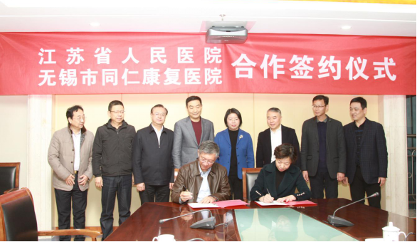 无锡市同仁康复医院作为首批长三角中西医结合心肺康复联盟成员单位之一,心肺康复科的发展得益于国内外诸多知名专家教授的大力帮助和指导。作为南京医科大学附属医院,依托高校的平台和资源,医院有幸得到美国医学科学院国际院士、国际物理医学与康复医学学会前任主席、中华医学会物理医学与康复医学分会主委励建安教授团队长期以来的支持和帮助,特别在学科建设、科研能力创新、临床诊疗水平提升等方面,给予诸多建设性的意见和指导。2019年12月初,在无锡市副市长刘霞、市卫生健康委党委书记、主任谢寿坤的见证下,无锡市同仁康复医院与江苏省人民医院再次签署医疗集团合作协议,标志着多年来与省人民医院励建安教授团队的新一轮深度战略友好合作全面启动。