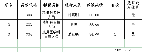 2021年高端人才公开招聘第二批面试成绩公示
